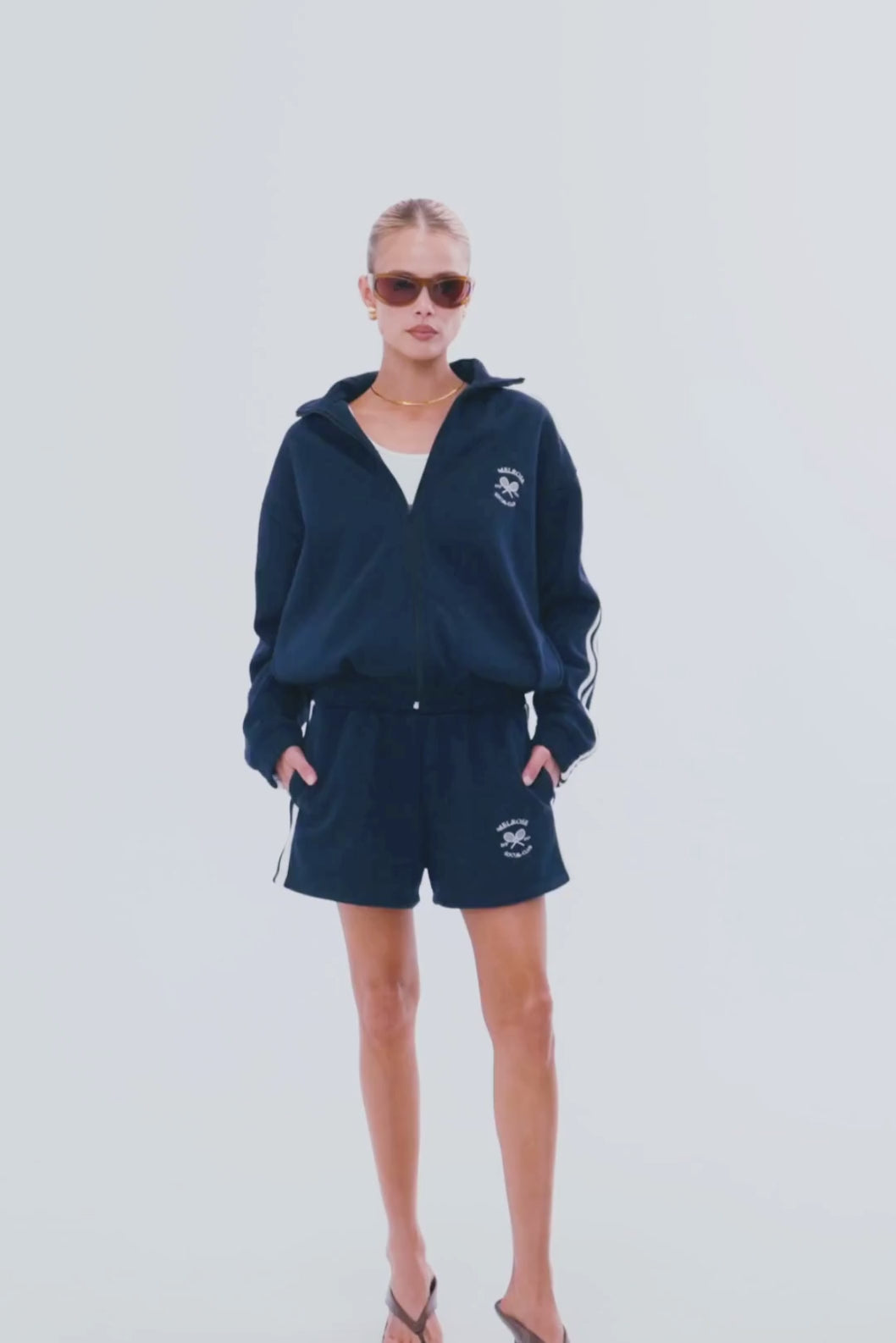 Melrose Social Club Fleece Track Jacket Navy Eco-Certified