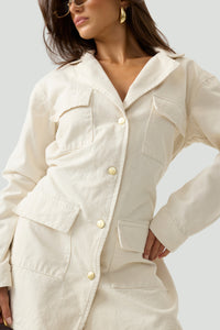 - HYPEACH Belted Denim Dress Ivory Eco-Certified
