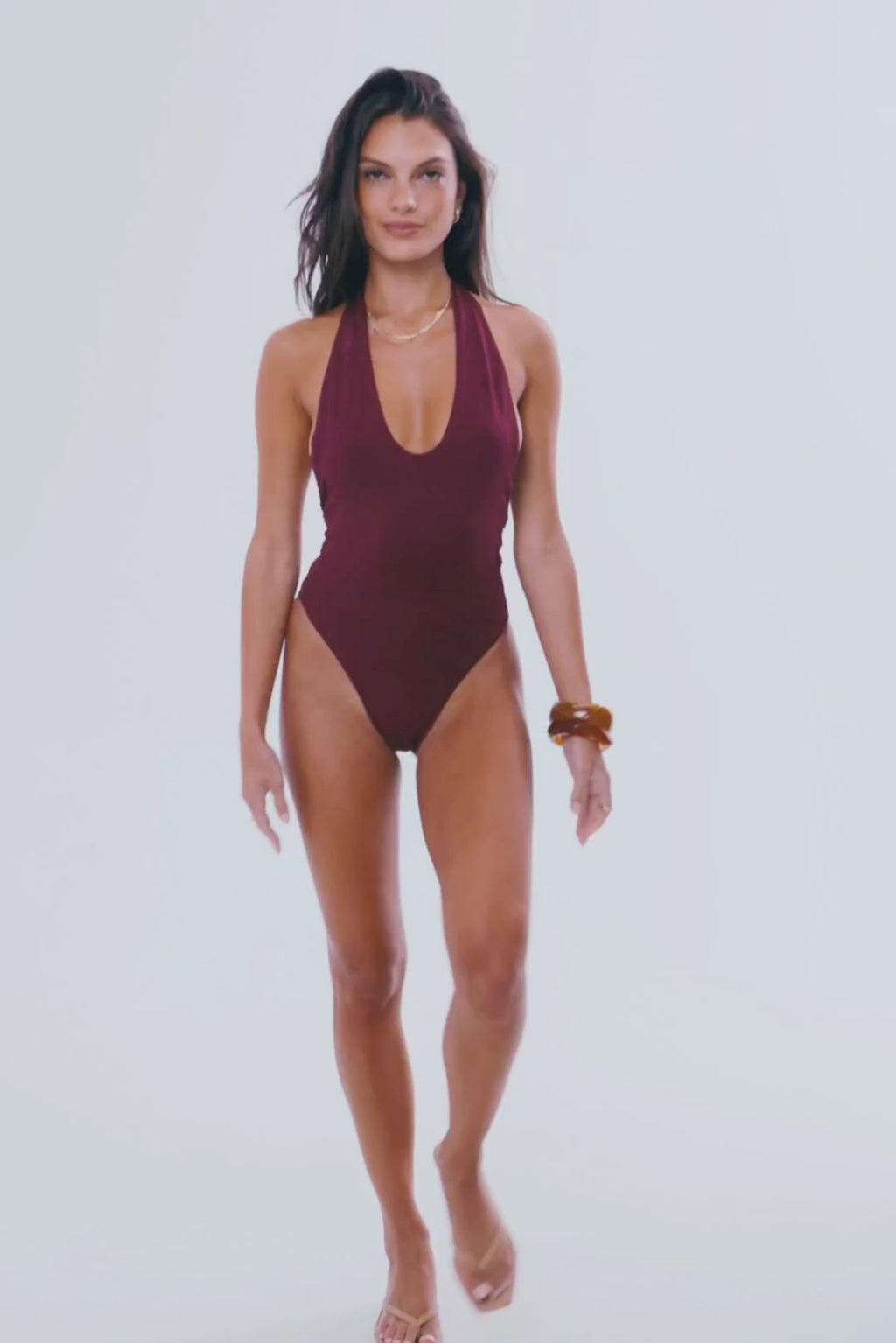 - Sophi One Piece Halter Body Swimsuit Burgundy Eco-Certified